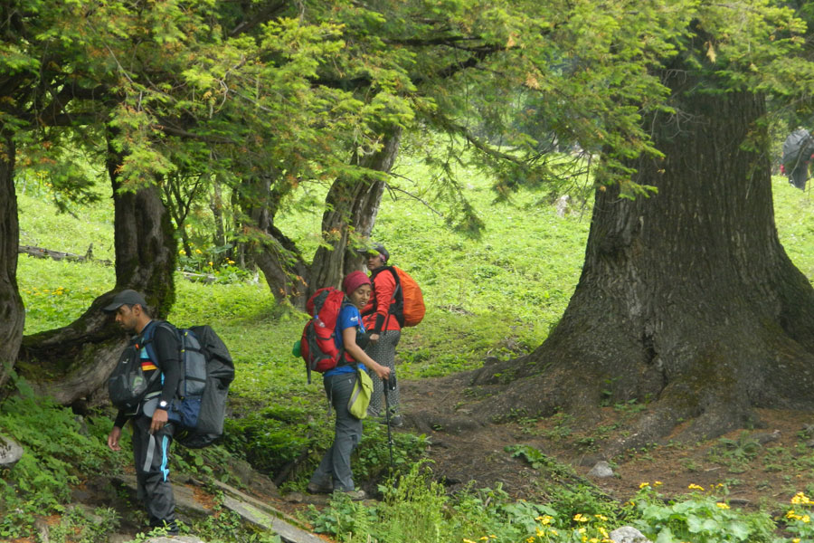 • The trek winds through the thick forests, beautiful meadows and grassy land ascents.